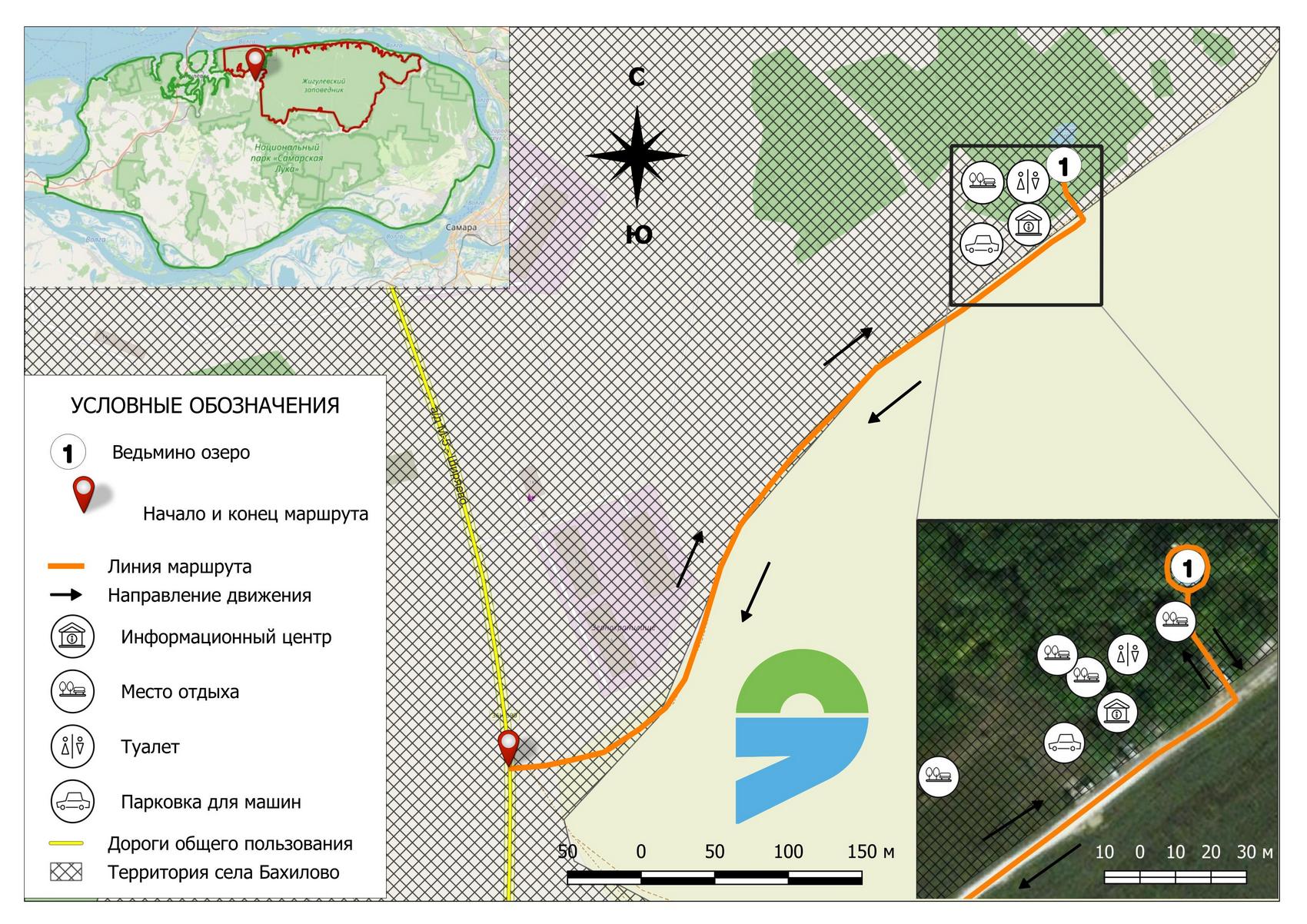 Информационный стенд «Ведьмино озеро» (начало тропы) — информационный центр — Ведьмино озеро — информационный центр — информационный стенд «Ведьмино озеро» ( окончание тропы)