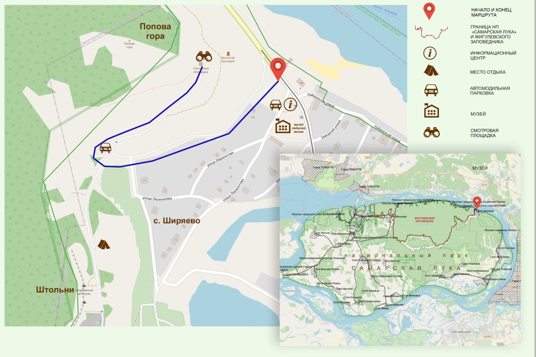 1.Трасса маршрута: Информационный центр национального парка «Ширяево» — подъем на вершину горы Попова – смотровая площадка