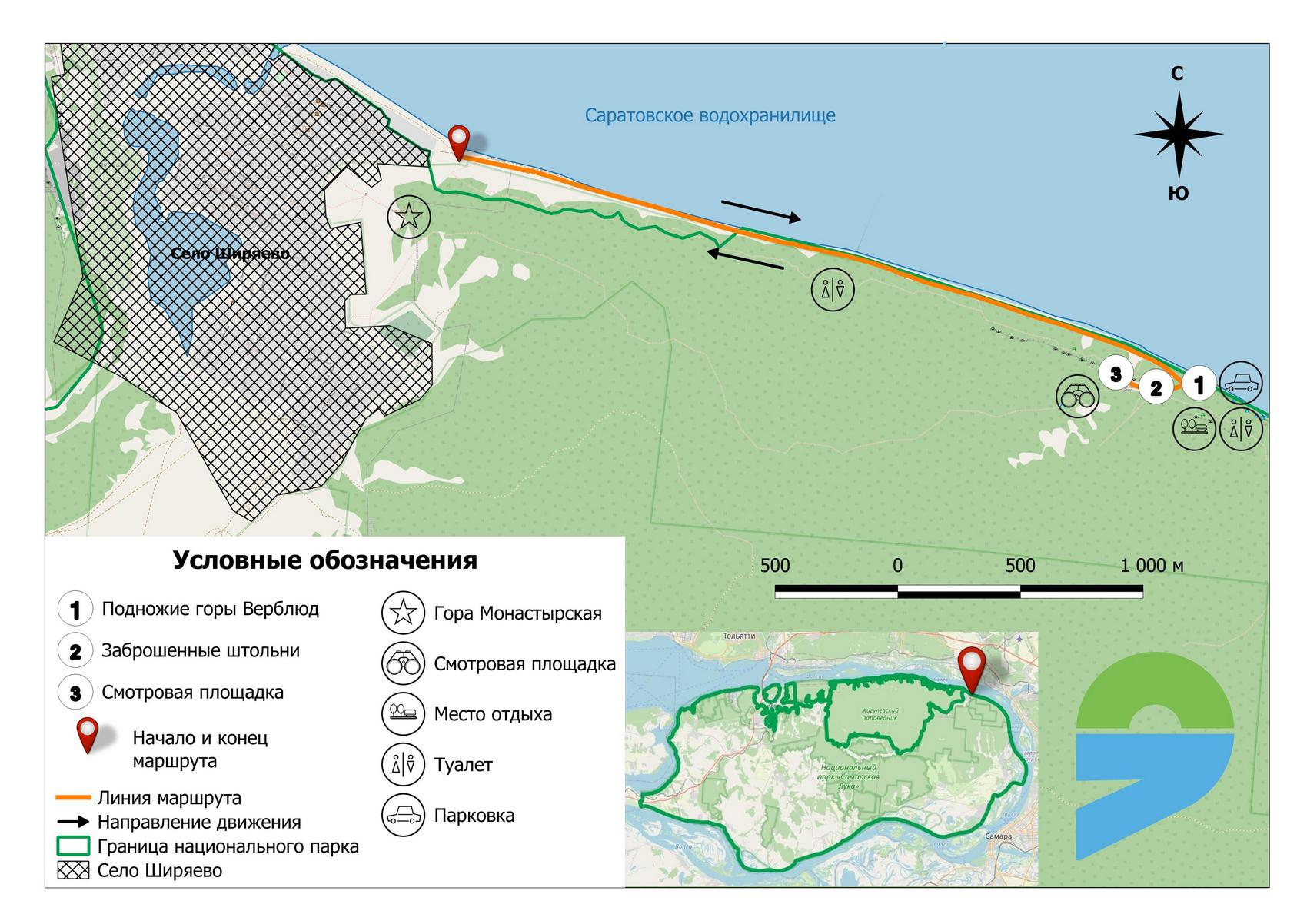 С. Ширяево — подножие горы Верблюд — заброшенные штольни — смотровая площадка — заброшенные штольни — подножие горы Верблюд — с. Ширяево.